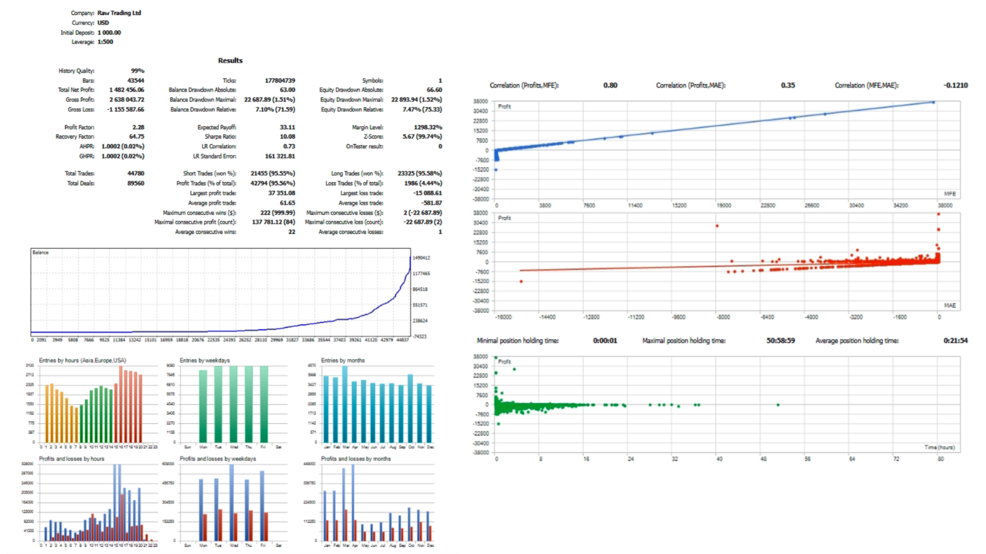 Os backtests foram realizados utilizando dados de ticks de alta qualidade para garantir resultados realistas e robustos.