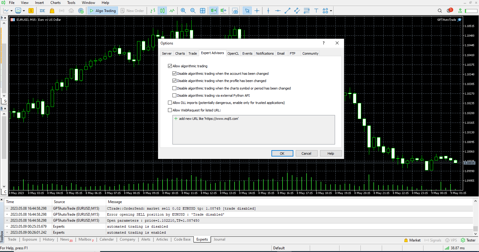 the last msg on expert setting is on/off algo to sure it was on , screen shot is attached