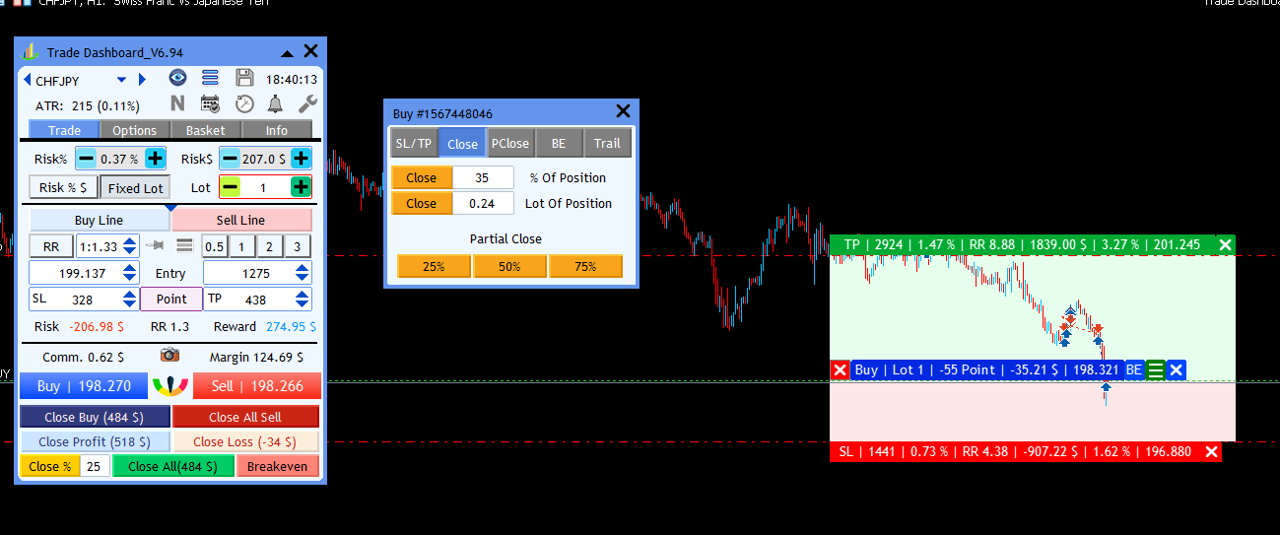 • Virtual SL/TP works only while Trade Dashboard is running