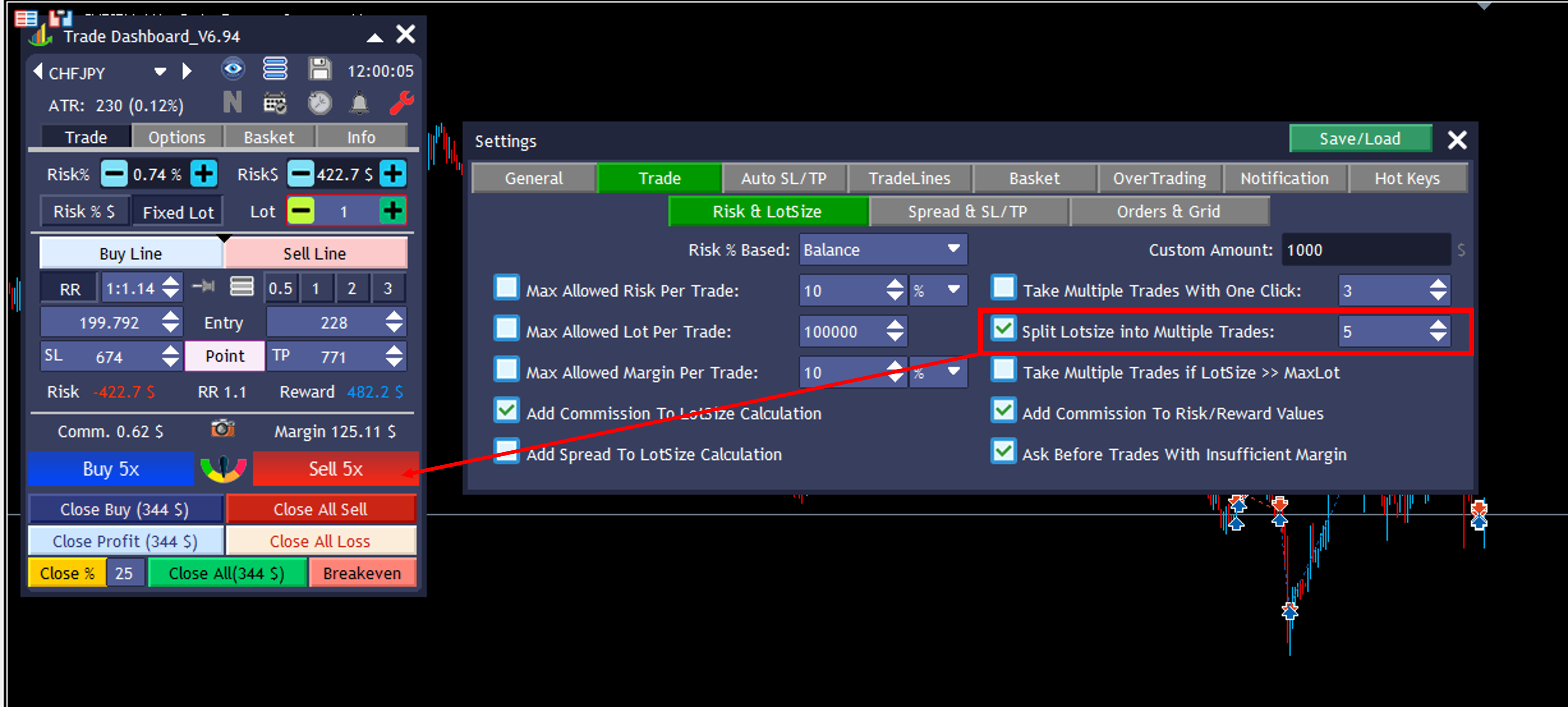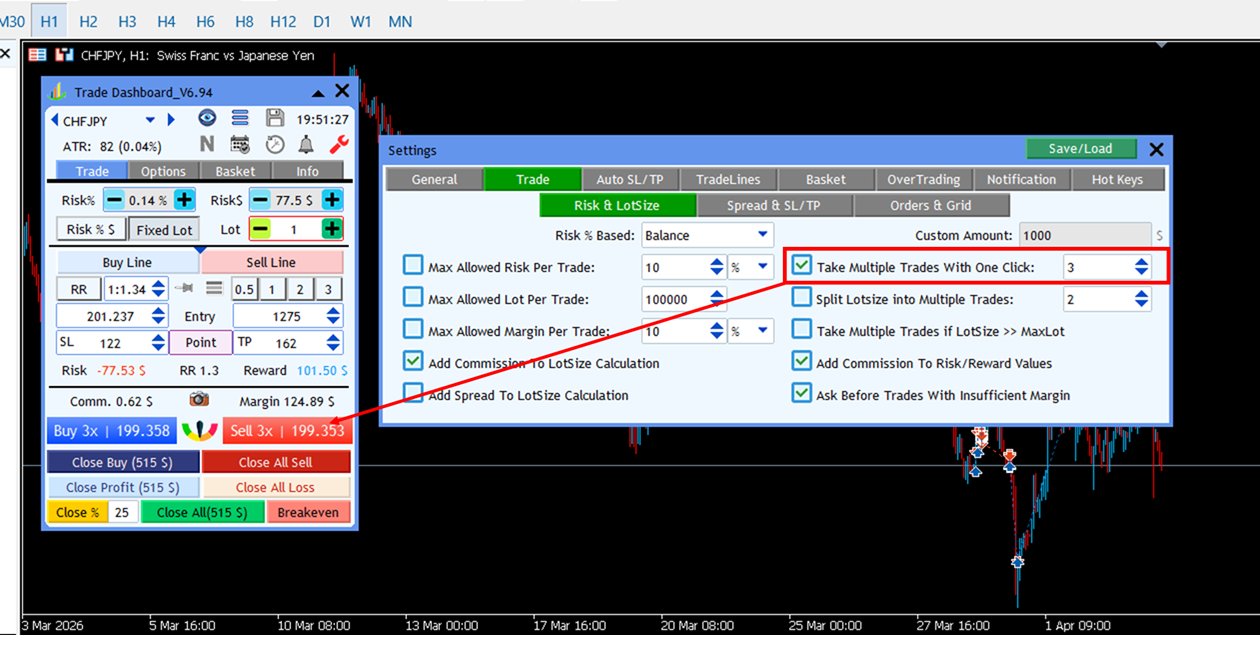 ✔️ Enable "Take Multiple Trades With One Click"