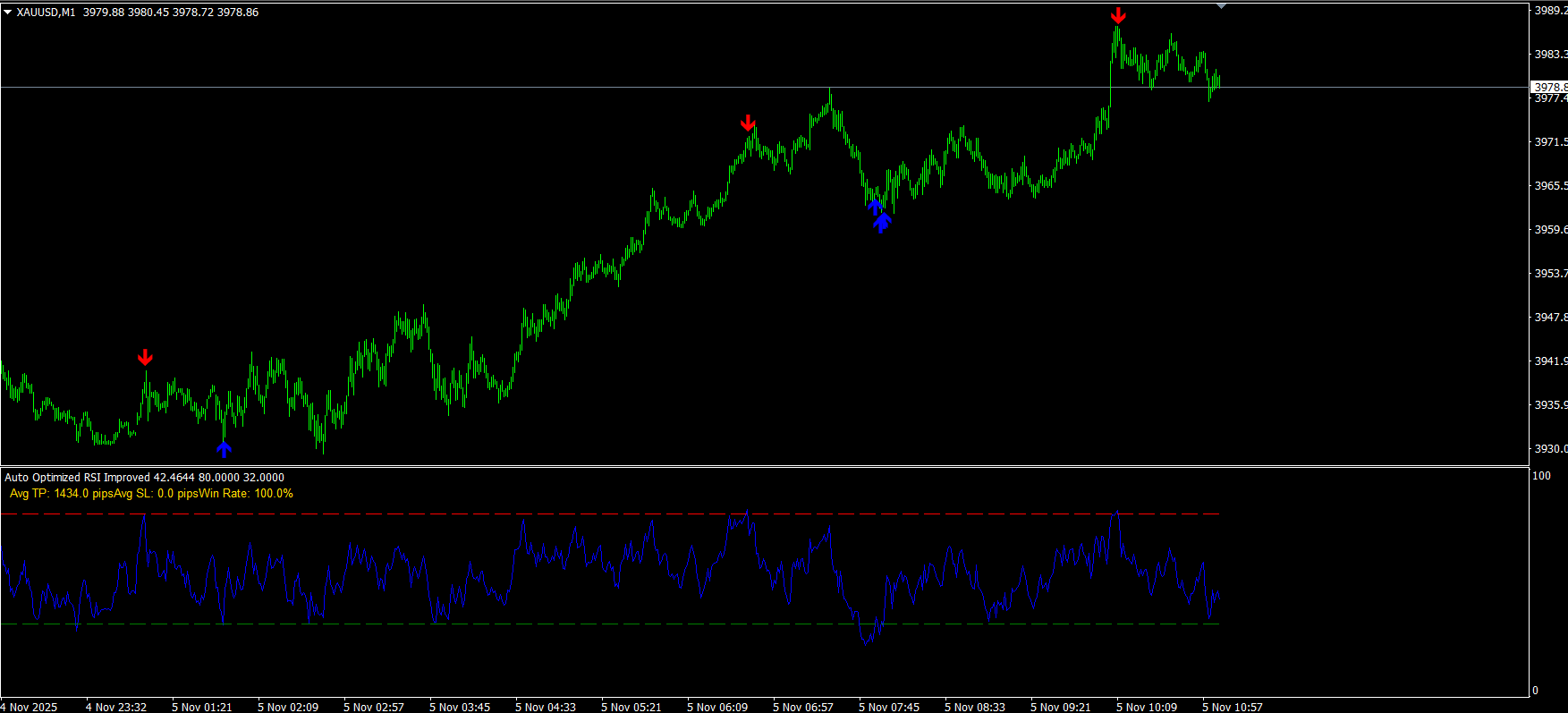 Auto Optimized RSI indicator signals tested on Gold M1 last 3 months https://www.mql5.com/en/market/product/143848