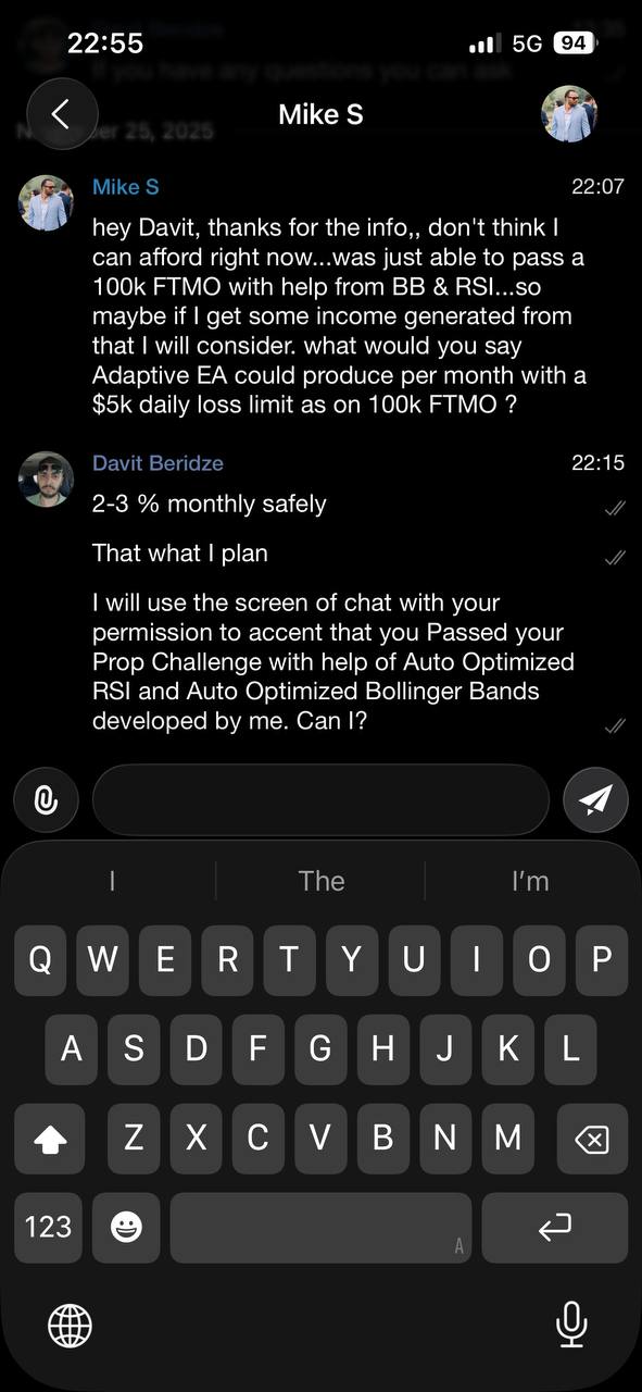 read the conversation :) That's why me and my customers like Auto Optimized RSI and Auto Optimized Bollinger Bands! Buy them and Get EA's Based on them for free as a Bonus: https://www.mql5.com/en/market/product/143848 https://www.mql5.com/en/market/product/145488
