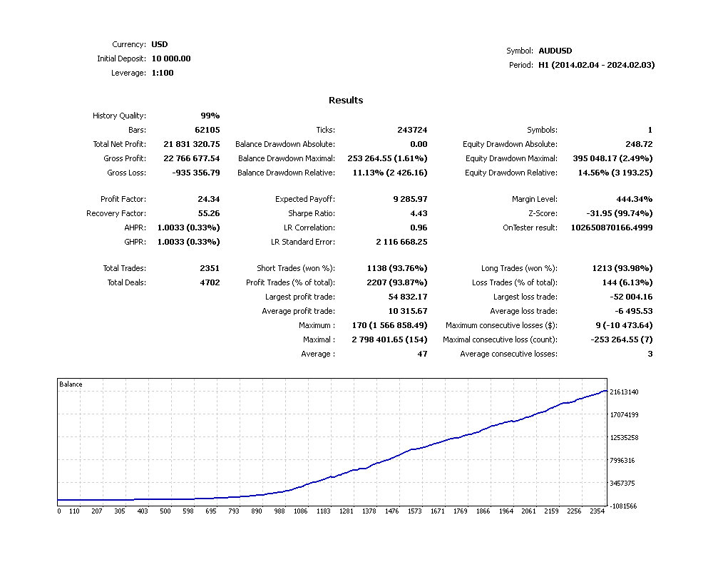 Robi Auto Expert Advisor works using sharp tick movements. It goes through the entire history and all currency pairs with one single setting. The more latency your broker has in the amount of the Internet channel, the higher you need to set stop loss, take profit and trailing stop so that the server can process them at the desired price and the lower the trading frequency will be. The uniqueness of the Expert Advisor is that it can be run on any hourly period, on any currency pair and on the server of any broker. This makes the Expert Advisor quite attractive to use for trading. It is recommended to work on liquid Forex pairs with a low spread. The lower the commission and spread, the greater the profit. You can start using it with $ 100 and 0.01 lot. A small initial deposit also contributes to the low-risk testing of the bot.