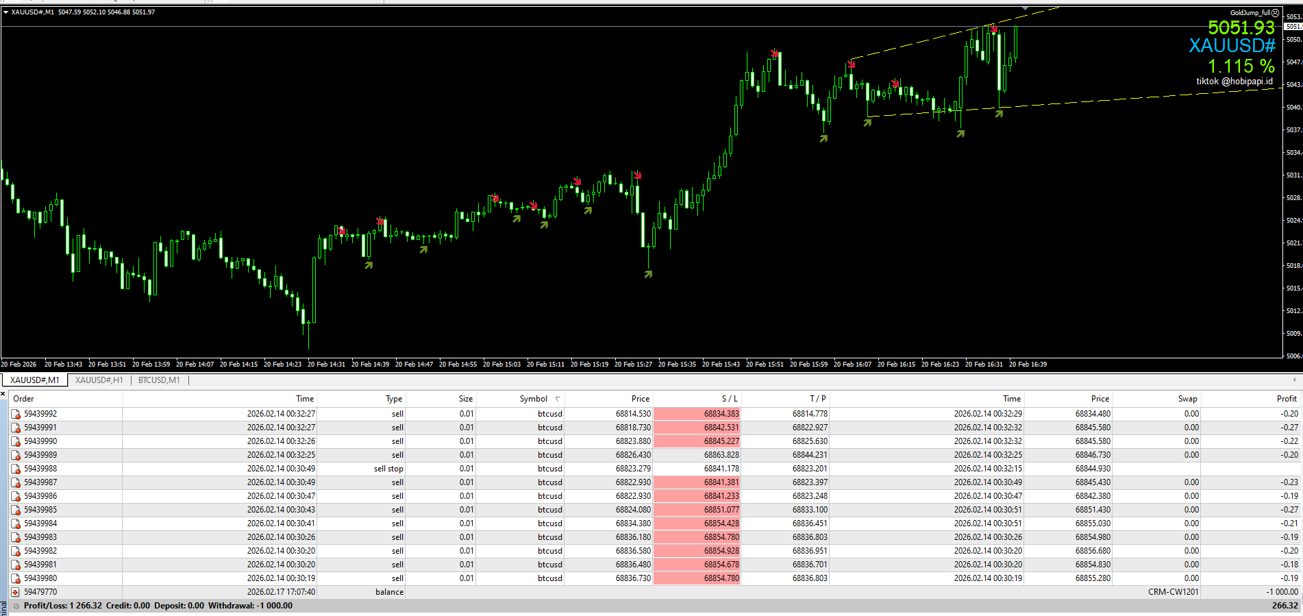 GoldJump EA is an Expert Advisor based on a gold scalping strategy specifically designed for the M1 timeframe with a structured risk management approach. This EA utilizes fast price movements during the Asian trading session to identify entry opportunities, targeting short yet consistent market moves. The system is equipped with Drawdown control (DD Max), measured Stop Loss (SL), and optimized Take Profit (TP) features to maintain performance stability and efficient margin usage. The GoldJump EA