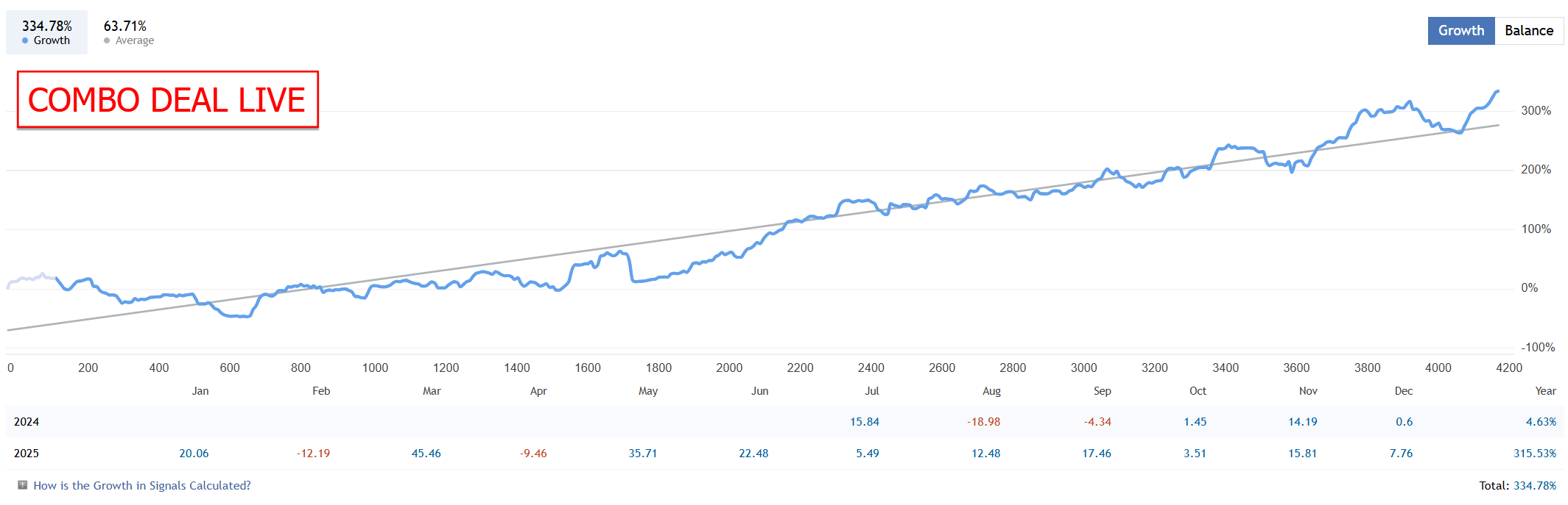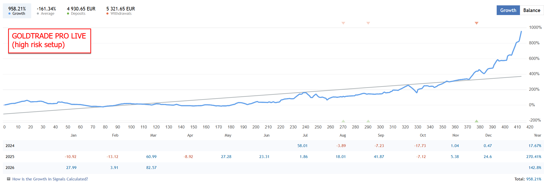 The result is a very stable growth curve, with some losses here and there as well (but at least not manipulated to trick you.) 📊