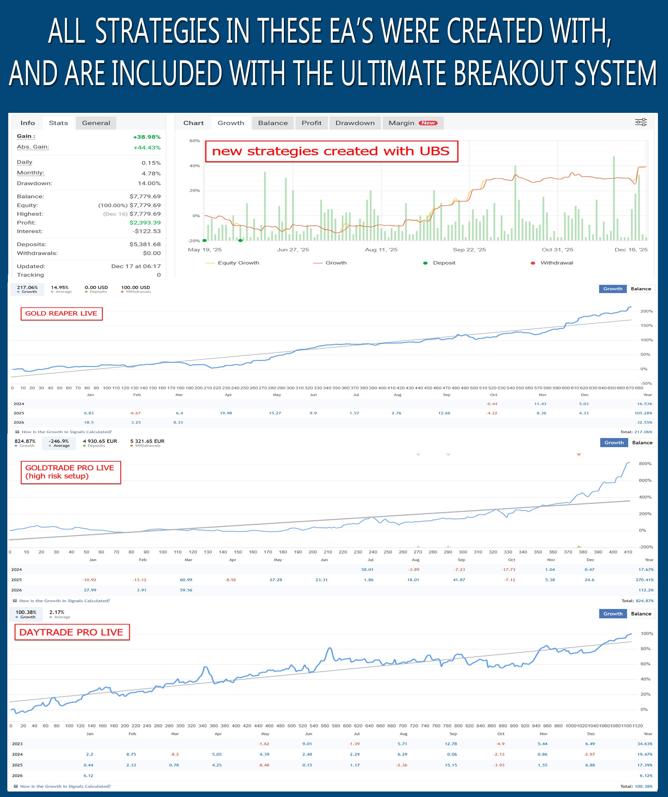 These aren’t risky experiments, they’re professional-grade EAs I’ve developed and polished over years, prioritizing consistency, low drawdowns,