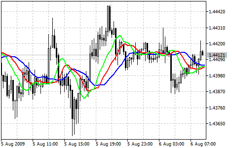 Билл Уильямс в своей книге действительно процветает, как я предполагаю, на "современной тенденции массового гипноза", раздувая три скользящие средние кривые индикатора Alligator до отношения к: