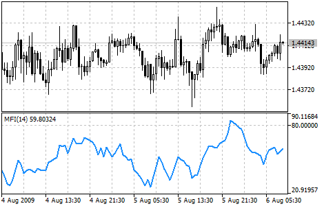 Технический индикатор Индекс Денежных Потоков (Money Flow Index, MFI) показывает интенсивность, с которой деньги вкладываются в ценную бумагу или выводятся из нее. Построение и интерпретация индикатора аналогична Relative Strength Index, с той только разницей, что в MFI учитывается и объем.