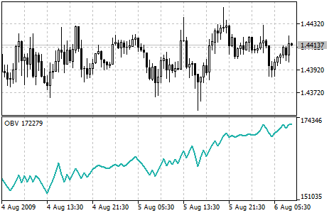 Интерпретация индикатора On Balance Volume основана на принципе, что изменения OBV опережают ценовые. Согласно этому принципу, повышение балансового объема свидетельствует о том, что в инструмент вкладывают средства профессионалы. Когда позднее и широкая публика начинает вкладывать, и цена, и показания индикатора OBV начинают стремительно расти.