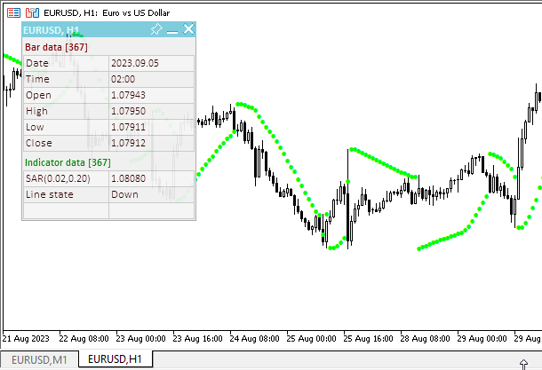Файл тестового советника "TestTrendSAR.mq5" можно посмотреть в прикреплённых к статье файлах.