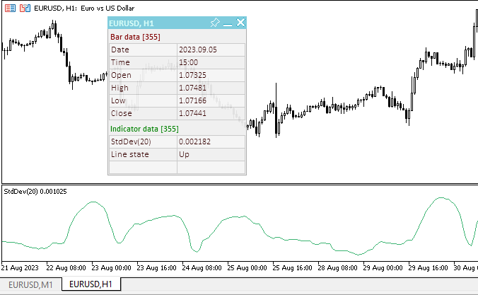 Файл тестового советника "TestTrendStdDev.mq5" можно посмотреть в прикреплённых к статье файлах.