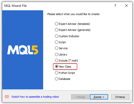 Как и в прошлой статье, все классы трейлингов будем располагать в одном файле. Далее этот файл просто подключается к советнику и используется. Обычно подключаемые файлы хранятся в папке \MQL5\Include\, либо в подпапке этого каталога.