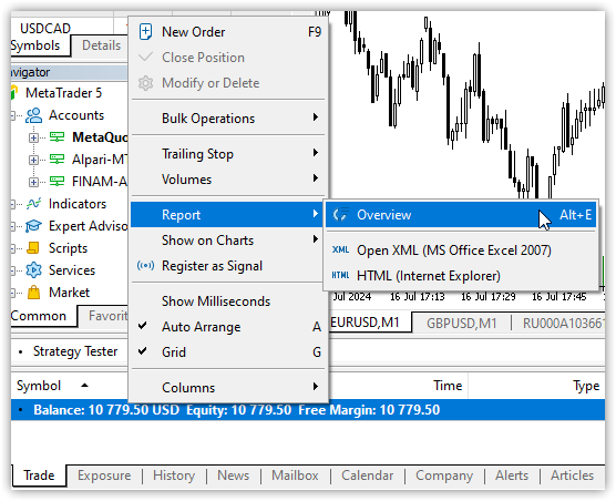 Наверное, каждый трейдер хотя бы раз сталкивался с необходимостью проконтролировать результаты торговли за прошедший день, неделю, месяц, и т.п., чтобы откорректировать свою стратегию по результатам торговли. Клиентский терминал MetaTrader 5 представляет хорошую статистику в виде отчётов, позволяющих оценить результаты своей торговли в удобной визуальной форме. Отчёт может помочь оптимизировать портфель, понять, как снизить риски и повысить стабильность торговли.