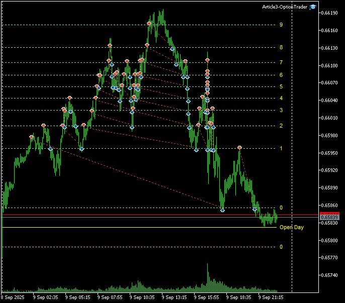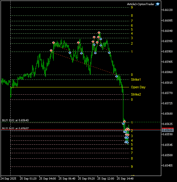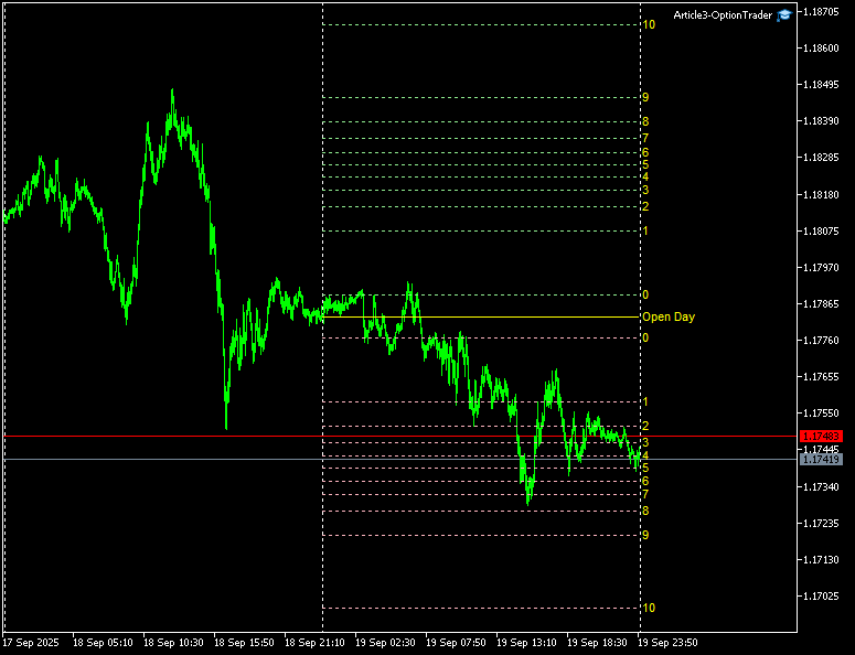 Уровни обновляются с появлением нового бара на графике МetaТrader 5. С открытием нового дня, старые уровни удаляются и начинают отрисовываться новые для текущего дня. Перед этим производится перерасчет исторической волатильности HV для нового дня.
