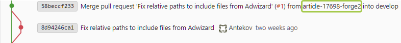 Последний коммит на скриншоте — это коммит слияния веток develop и article-17607.