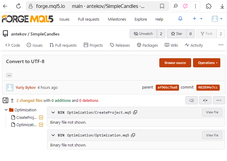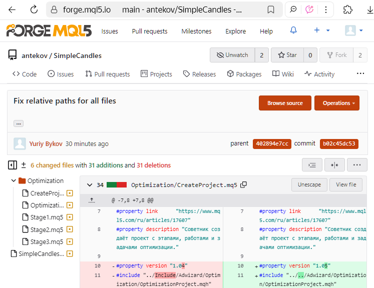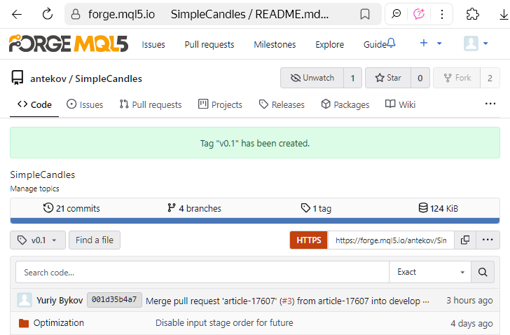 Вот как это выглядело в веб-интерфейсе хранилища MQL5 Algo Forge: