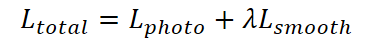 Функция потерь включает два ключевых компонента: фотометрическую реконструкцию Lphoto и гладкость потока Lsmooth, и выражается как: