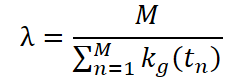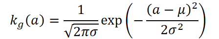 Здесь kg(a) — ядро сэмплирования по гауссовской модели, µ — среднее значение временных меток, σ — дисперсия, рассчитанная по всем M событиям. λ — нормализующий коэффициент.
