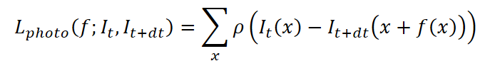 где λ регулирует вес гладкости по отношению к фотометрической точности. Фотометрическая потеря оценивает расхождение между первым изображением и преобразованным вторым изображением, учитывая предсказанный поток: