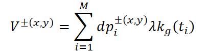 Для набора из M событий (xi, yi, ti, pi) i ∈ [1:M] в одном блоке применяется гауссовская модель для аппроксимации их временного распределения. Каждому событию присваивается соответствующий вес.