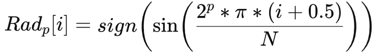 Теперь, давайте обсудим период функций Радемахера. Предположим, что я решил построить систему 2 порядка. При классическом подходе период всех функций будет равен 4. Допустим, что я решил удвоить период (пример не совсем удачный, но пусть будет так). Никаких препятствий этому нет. А что даст такое удвоение? Наиболее сильно оно скажется на функции самого высокого порядка. В классической системе эта функция является чередованием +1 и -1. Она будет хорошо работать только при явно выраженном тренде. После удвоения коэффициенты этой функции станут выглядеть так: +1,+1,-1,-1 и т.д. Таким образом я смогу сгладить эту функцию, и она станет менее чувствительной к шумам и выбросам.