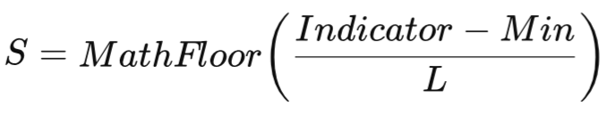 Для описания состояния рынка я буду использовать осциллятор Радемахера. На основе исторических данных я найду максимальное и минимальное значения этого индикатора. Я буду различать N состояний осциллятора. Тогда величину каждого состояния можно найти по формуле: