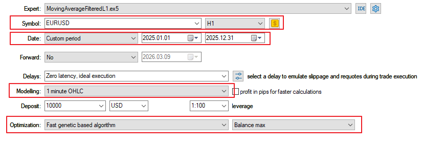 В рассмотренных примерах тестирование торговых стратегий производилось на валютной паре EURUSD, H1 за 2025 год (рис.62).