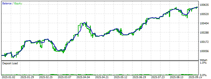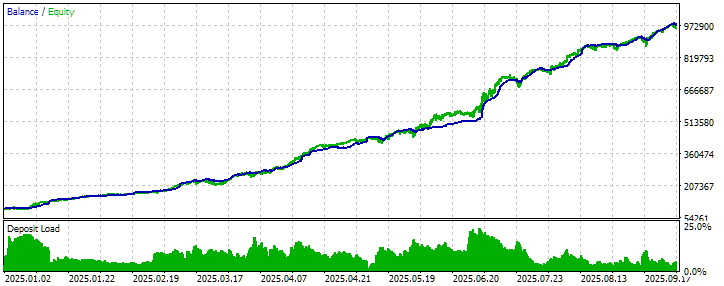 Результаты тестирования на периоде 2025.01.01 — 2025.10.01 с настройками по умолчанию получились вот такие: