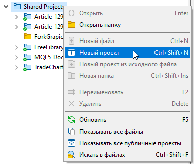 В навигаторе MetaEditor строго на папке Shared Projects вызовите контекстное меню (ПКМ) и выберите "Новый проект". Это ваша точка входа в современную экосистему: