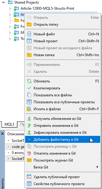 Как только вы нажали "Сохранить правки" на сайте, ваша работа не пропадает — она становится частью проекта. Теперь достаточно вернуться в MetaEditor и нажать уже знакомый "Получить обновления из Git", чтобы свежее, оформленное описание "прилетело" из облака прямо к вам в редактор.