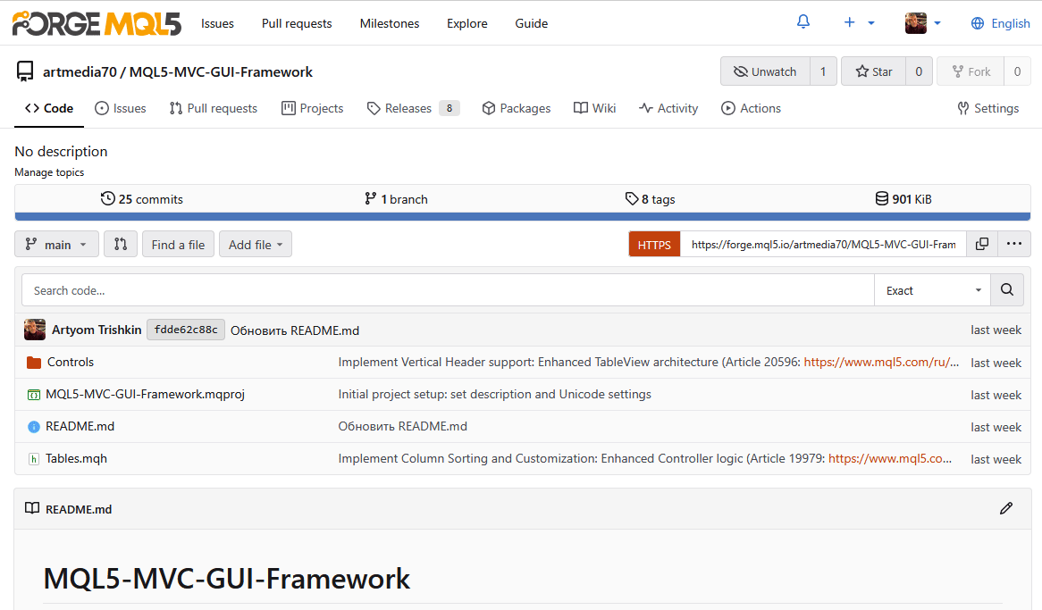 Тут я начал ощущать себя заложником собственных публикаций. И всё чаще стал смотреть в сторону MQL Algo Forge, как на возможное решение разных проблем, связанных с поддержкой своих разработок и публикаций.