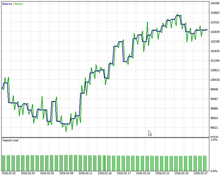Результаты бэктеста оказались умеренно сильными и, что важнее, достаточно чистыми по риску. На EURUSD, на таймфрейме M15, за период с 1 февраля по 2 марта 2026 года система совершила 43 сделки и заработала 2 942,67 доллара при стартовом депозите 100 000 долларов. Profit Factor составил 1,47, доля прибыльных сделок — 60,47%, а максимальная относительная просадка по equity осталась на уровне всего 2,73%. Для модели, которая принимает решения через многоступенчатый совет аналитиков и риск-менеджеров, это означает главное: система не просто умеет угадывать направление чаще случайности, но делает это без разрушительной цены в виде глубоких провалов капитала.