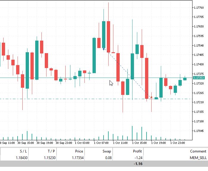 И также мы увидим результаты первого открытия сделки: