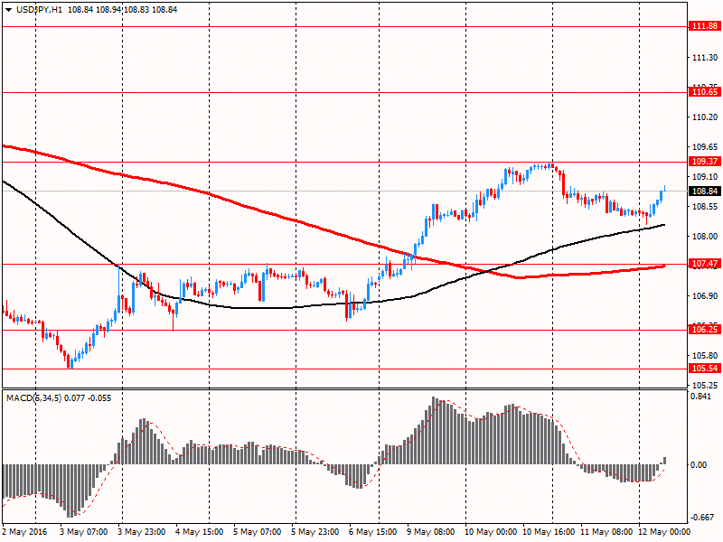 Пара USD/JPY демонстрирует небольшое повышение, и постепенно возвращается к отметке Y109.00. Причиной такой динамики, вероятно, были заявления главы ЦБ Японии и технические факторы. Глава Банка Японии Курода отметил, что текущий курс денежно-кредитной политики является целесообразным, хотя пока не удалось достичь целевого уровня инфляции. Курода повторил, что ЦБ будет выбирать из доступных инструментов в своем арсенале, включающем меры количественного и качественного смягчения, а также процентные ставки в случае необходимости в дополнительном смягчении политики. Курода добавил, что видит значительные понижательные риски для японской экономики и инфляции, и Банк Японии “без промедления” примет дополнительные меры в случае необходимости. Небольшое влияние оказали данные по Японии. Министерство финансов Японии сообщило, что в марте профицит текущего счета платежного баланса резко вырос, достигнув максимума за девять лет, чему способствовало улучшение торгового баланса и высокий доход от иностранных инвестиций. Согласно отчету, положительное сальдо в марте выросло на 6,9%, до 2,980 трлн японских иен. Экономисты прогнозировали, что оно составит 3,05 трлн иен. Важное сопротивление – Y111.88 (максимум 28 апреля). Сильная поддержка - Y105.54 (минимум 3 мая).