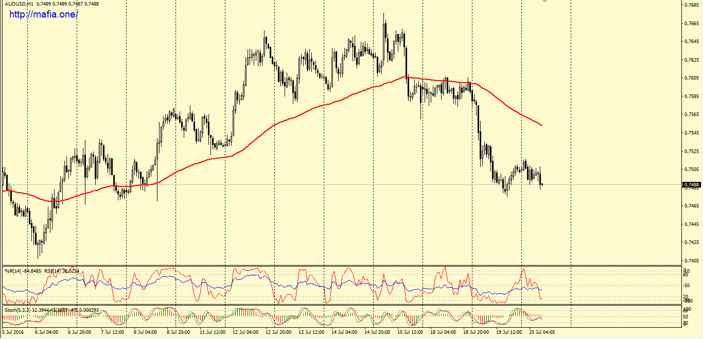 Пара AUD/USD демонстрирует небольшое снижение. Давление на пару продолжают оказывать протоколы последнего заседания РБА. Они показали, что ЦБ не исключает возможность смягчения политики, поскольку экономика, вероятно, несколько замедлилась в прошлом квартале, импульс на рынке труда ослаб, а инфляция будет оставаться на низком уровне. "Последние данные по второму кварталу соответствуют определению умеренного роста валового внутреннего продукта, но он будет ниже, чем ожидалось. Инфляция останется достаточно низкой в течение некоторого времени", - отметили в ЦБ. РБА также отметил, что укрепление обменного курса может усложнить необходимые экономические корректировки Аналитики отмечают, что целесообразность снижения процентной ставки РБА в начале августа будет полностью зависеть от данных по инфляции потребительских цен за 2-й квартал. Низкая инфляция может заставить РБА понизить процентную ставку на 25 базисных пунктов. Сильное сопротивление - AUD0.7673 (максимум 15 июля). Важная поддержка - AUD0.7406 (минимум 6 июля).