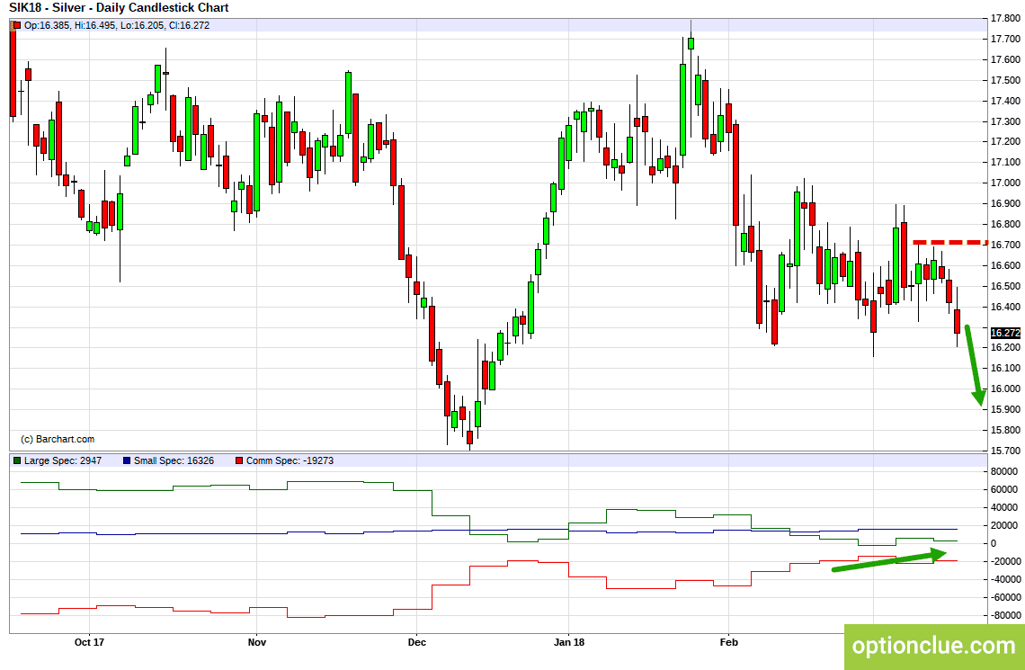 Серебро (SIK18). Технический анализ и индикатор нетто-позиции СОТ.