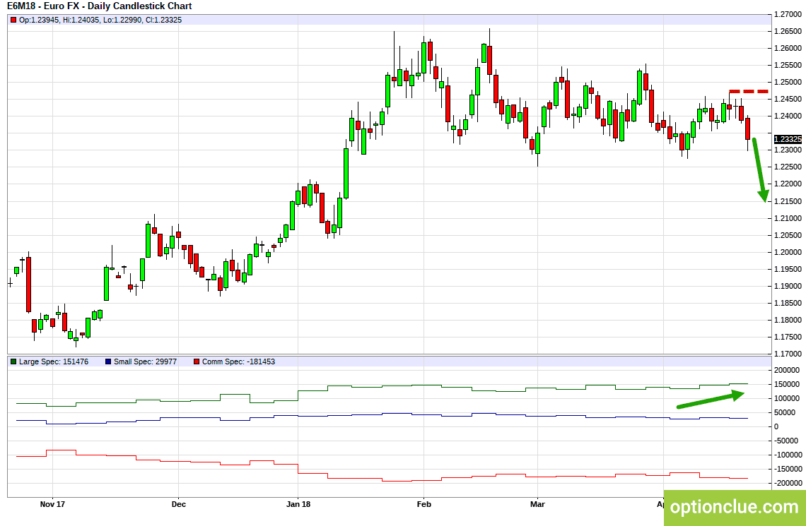 EURUSD. Технический анализ и индикатор нетто-позиции СОТ.