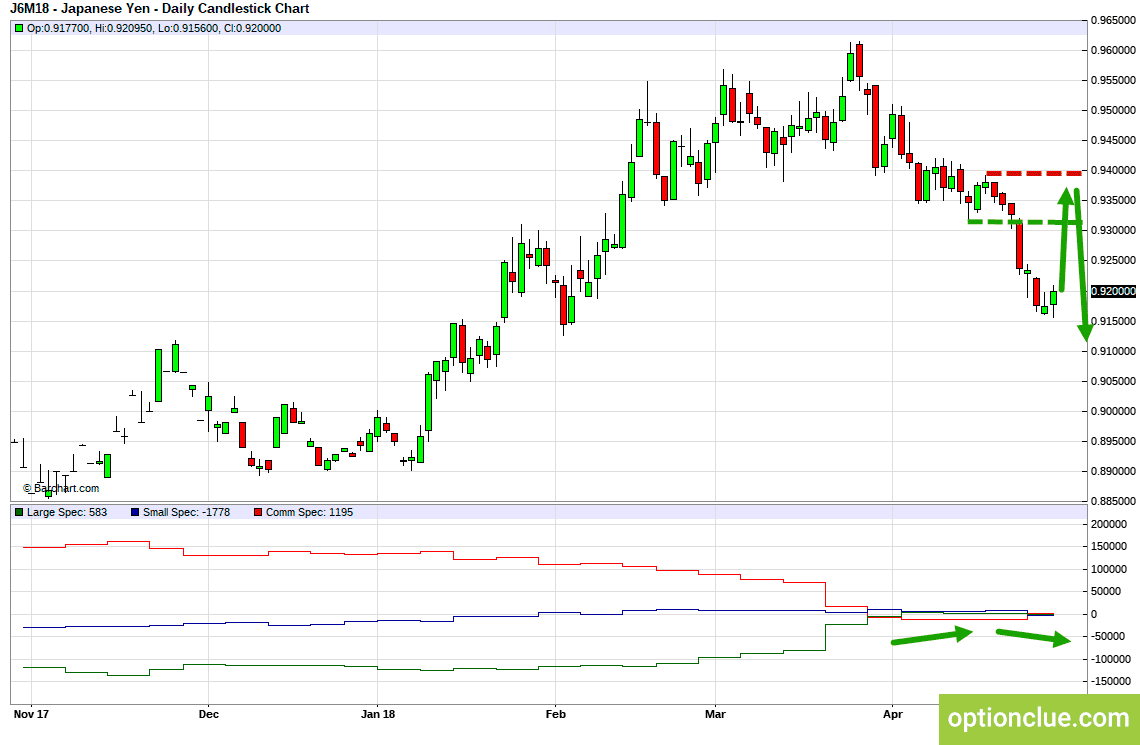 Индикатор COT развернулся, крупные спекулянты продают йену, мнение профессионалов сочетается с направлением тренда на Daily.