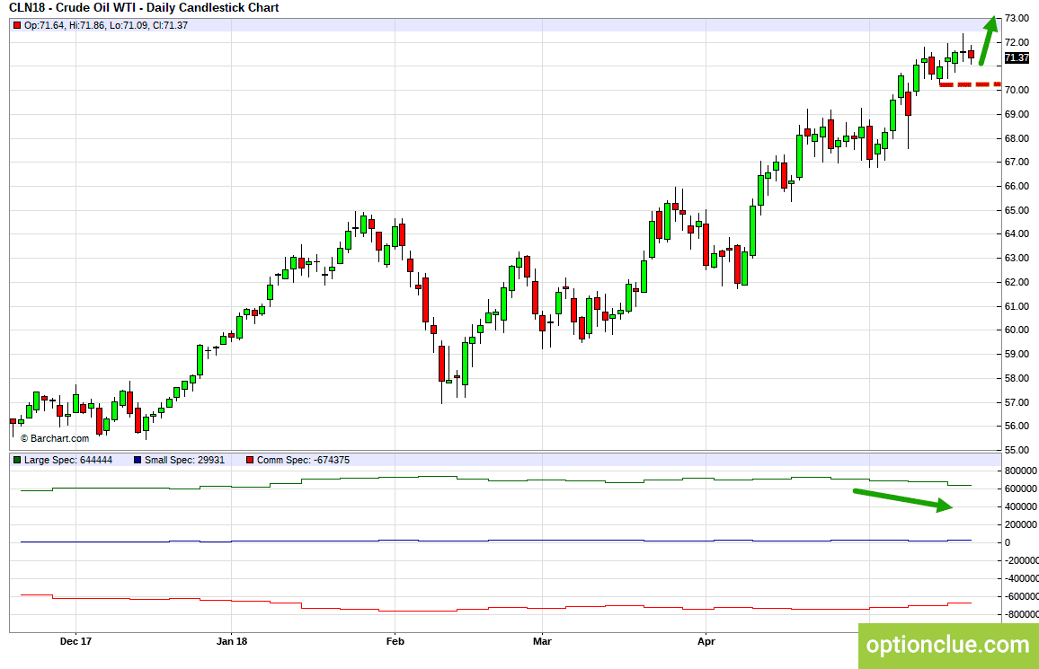 Нeфть WTI (CLN18). Технический анализ и индикатор нетто-позиции СОТ.