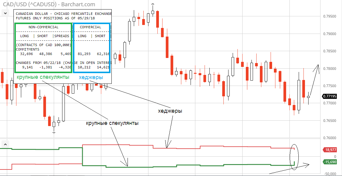 По последним данным COT CFTC крупные спекулянты резко нарастили длинные позиции (хеджеры – наоборот), что может являться косвенным подтверждением рассмотренной выше про укрепление канадской валюты: