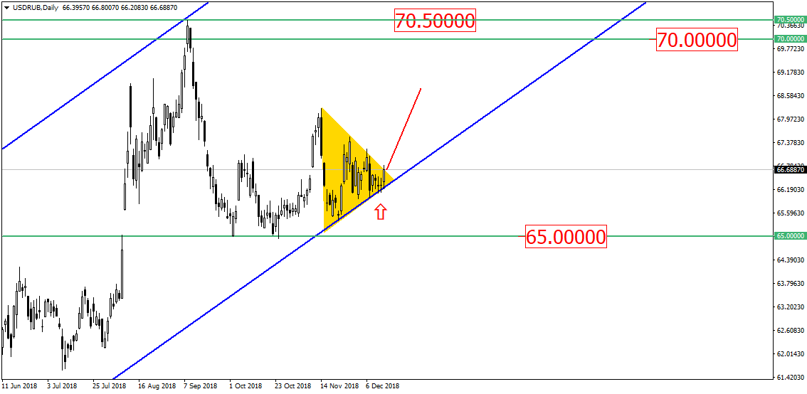 Базовый сценарий остается таким же – прорыв треугольника на дневном графике и движение к уровню 70.00: