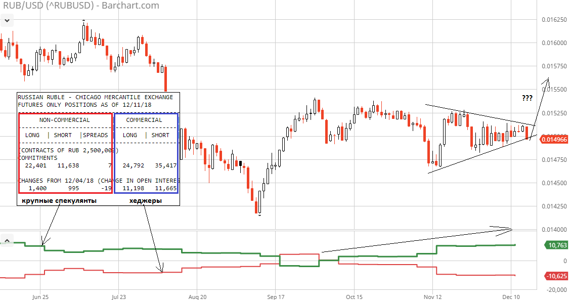 А вот отчеты COT CFTC пока указывают на возможное снижение пары доллар/рубль, учитывая то, что крупные спекулянты сидят в продажах и потихоньку их наращивают. Хотя, после последних решений Банка России ситуация в расстановке сил может и поменяться: