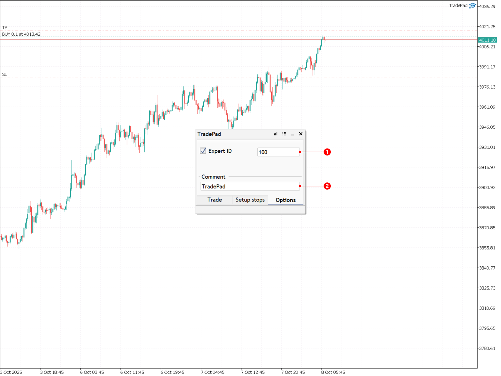 - Поместите файл TradePad_Demo.ex5 в папку Experts;