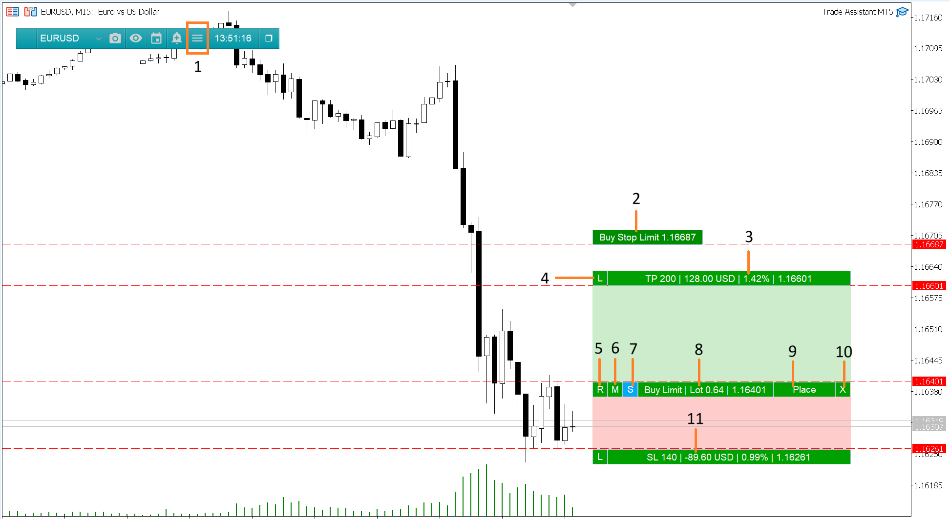 The lines indicate information with what parameters the future order will be opened, and in the additional parameters you can choose what information will be displayed.