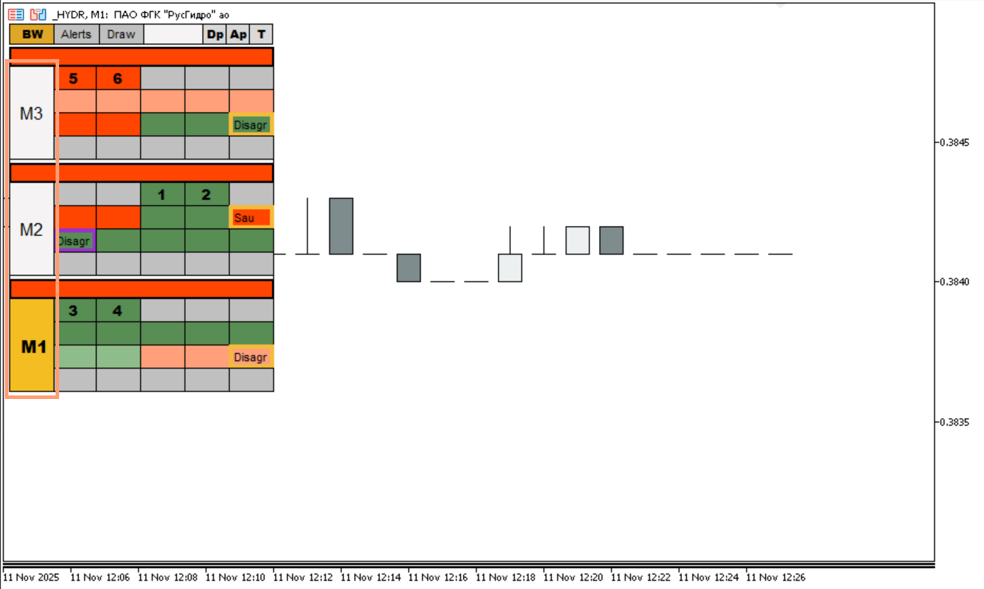 - "Покупка или продажа в несогласии с движущей силой" - на панели индикатора отмечается, как "Disagr"