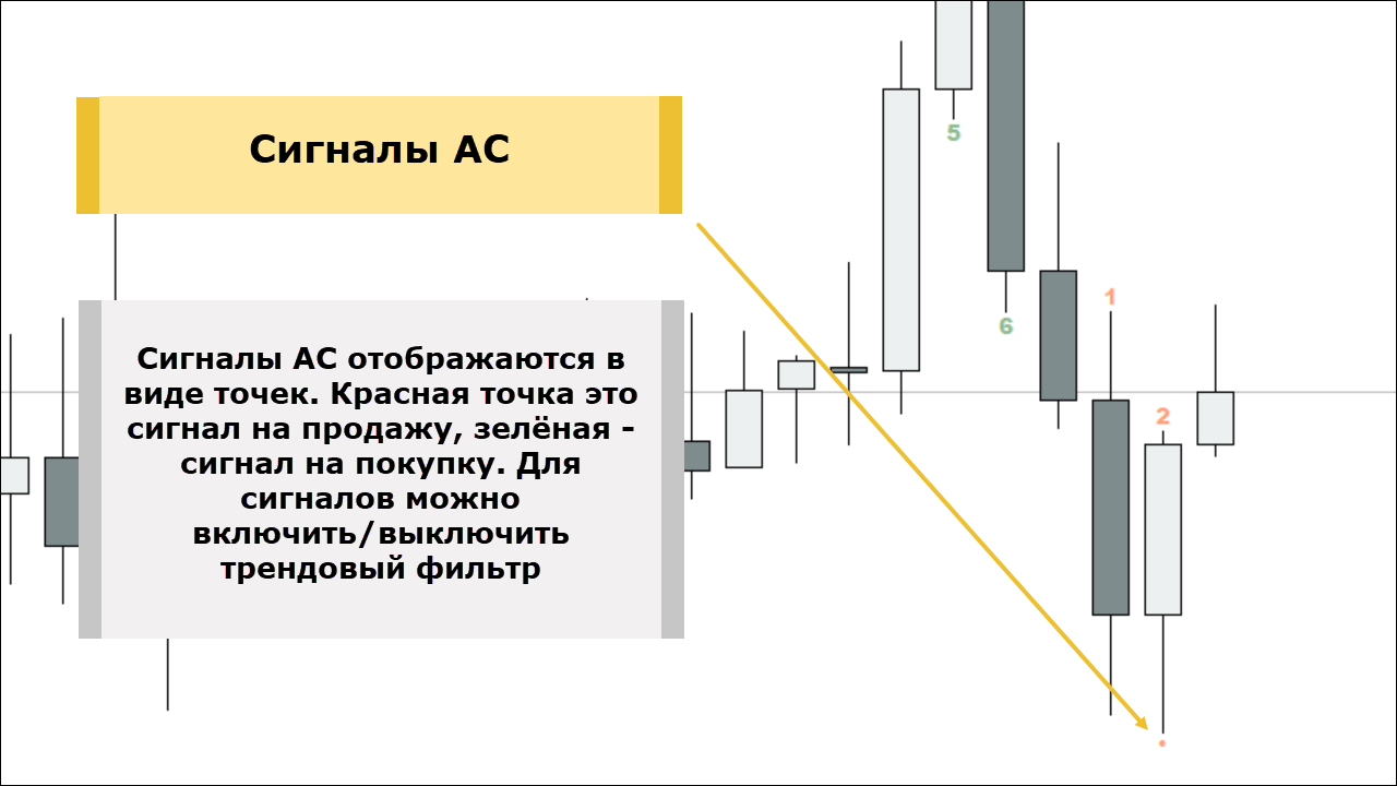 - 3 строка. Отображает сигналы индикатора AC(Accelerator Oscillator).