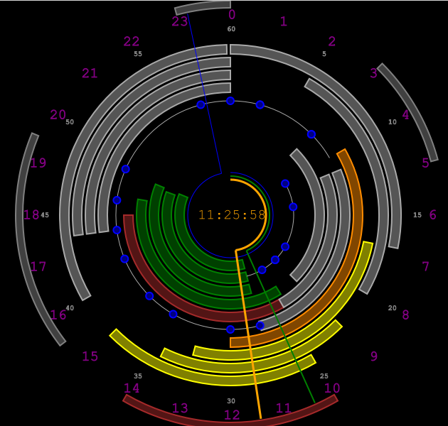 Зато стрелочки ходят, всё (цвета,стили,расположения,время) настраиваемое, сектора подсвечиваются. Картинка масштабируетя.