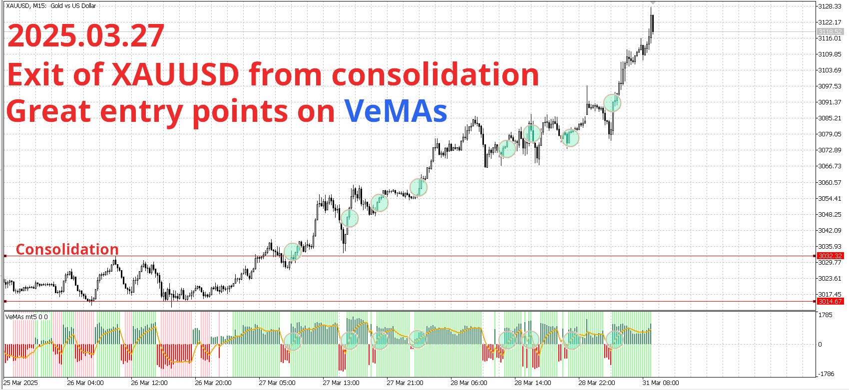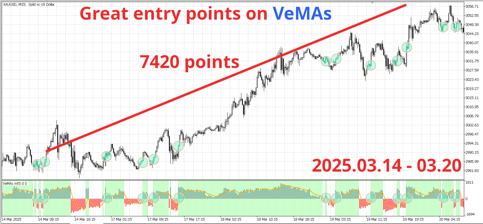 Отличные точи входа с индикатором VeMAs на XAUUSD за март