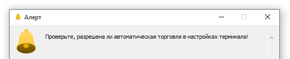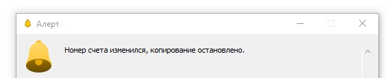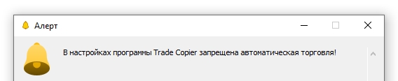 В Trade Copier есть функции, которые помогают избежать ошибочной работы копировальщика. При срабатывании данных функций, копировальщик выводит на график Алерт с предупреждением: