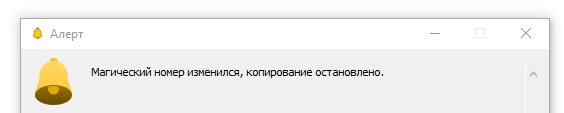 | Вы изменили Magic Number копировальщика, не отключив перед этим процесс копирования, вследствие этого копировальщик сам остановил свою работу. Отключайте процесс копирования перед изменением настроек копира! |